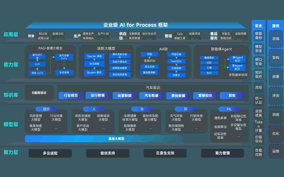 乐金城问学智车解决方案是一套基于AI技术的汽车行业智能化系统,,,覆盖从底层算力到顶层AI应用的全栈方案。。。。方案由算力层、、、模型层和应用层组成:算力层,,,,方案支持多种一体机配置,,,,具备云端灵活部署、、、多云适配以及动态优化计算资源的能力;模型层,,乐金城问学平台版提供了企业级AI应用一站式构建与管理平台,,,,支持基于后训练强化技术的汽车企业专属模型的训练、、、、评测和运营;应用层,,乐金城问学DeepSeek版提供包括超级员工、、、、智能招采、、、、智能营销、、、、智能客服、、AI for BI等一系列解决方案,,可助力汽车行业实现数字化转型,,让管理更智能、、响应更敏捷。。